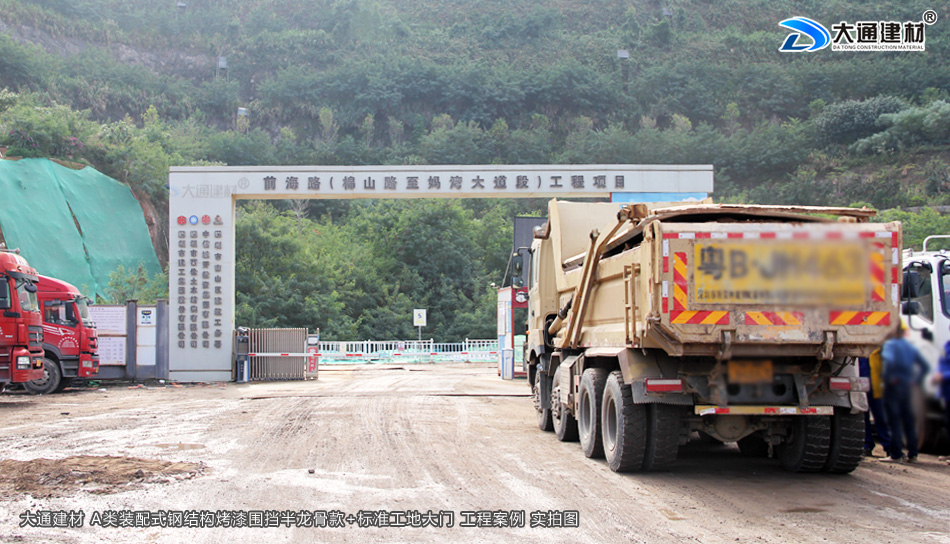 廣東省深圳市南山區(qū)前海路的棉山路至媽彎大道段工程項目使用了大通建材生產(chǎn)銷售的A類烤漆鋼圍擋2.5米高半龍骨款、圍擋基礎塊、標準工地大門等產(chǎn)品