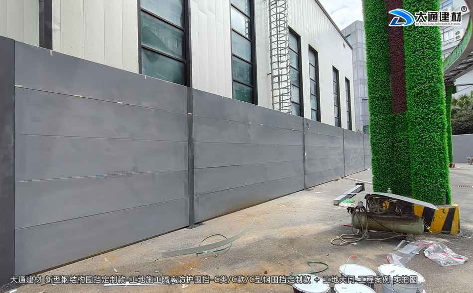 深圳市大通建材C類/C款/C型鋼圍擋生產(chǎn)廠家,大通圍擋可按工地實際情況及需求定制化生產(chǎn),下面展示的是定制款C類/C款/C型鋼圍擋安裝在深圳龍崗比亞迪改造工程的部分實拍圖