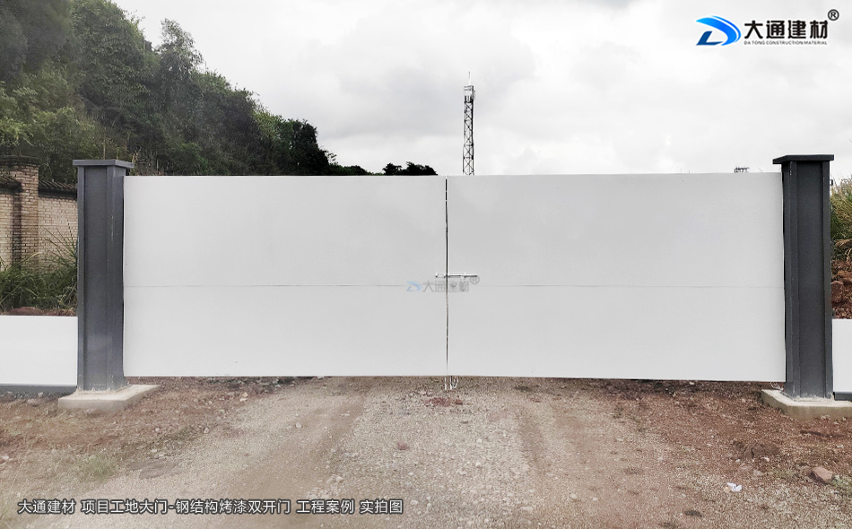 建筑工地大門-施工大門-鋼結(jié)構(gòu)烤漆雙開門-工地大門-深圳市大通建材有限公司鋼圍擋生產(chǎn)定制廠家