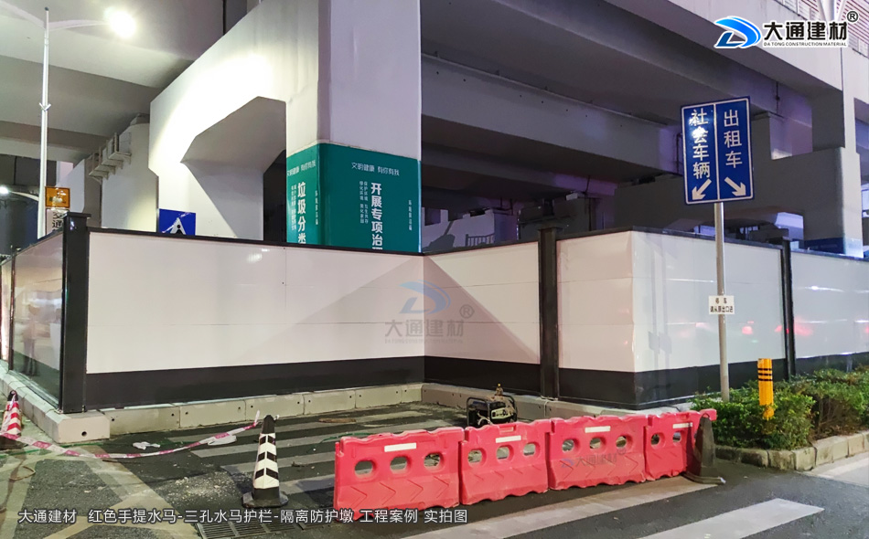 大通建材手提水馬又稱注水水馬、施工水馬、塑料水馬圍欄、塑料圍欄、塑料隔離欄、隔離水馬、交通水馬等,用于城市道路、公路、高速隔離、工地建設(shè)、施工地、收費(fèi)站、路口、廣場(chǎng)、商場(chǎng)引導(dǎo)隔離等地方 臨時(shí)分道路使用。