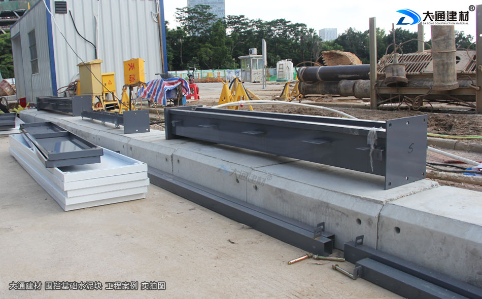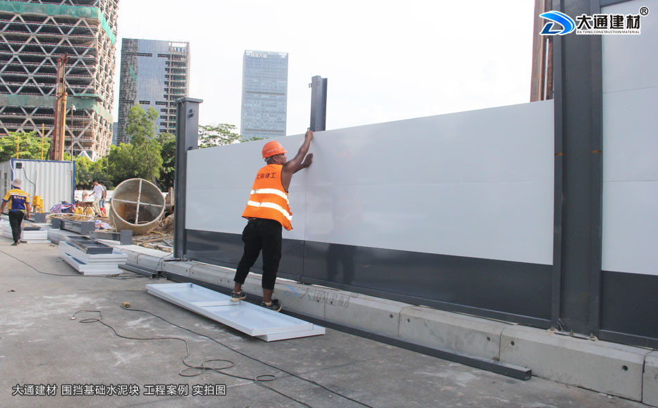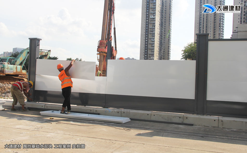 上述展示 深圳市大通建材的圍擋基礎(chǔ)墩與圍擋的安裝過(guò)程