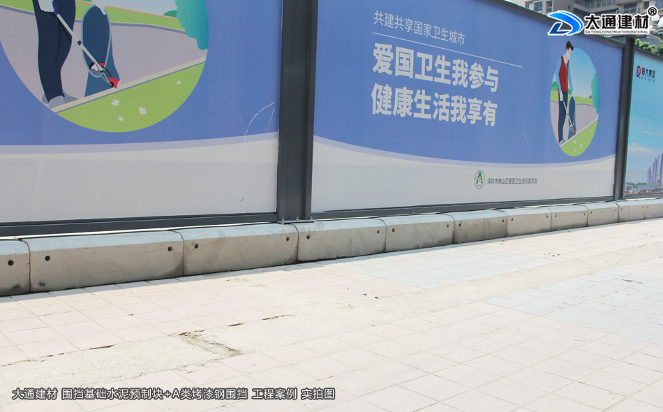深圳大通建材在東莞設有大型的圍擋基礎水泥預制塊生產基地,有大批量現貨 下單即可發貨配送安裝,大通建材圍擋基礎通常與裝配式鋼圍擋A類/B類/C類一起使用,基礎塊體將圍擋立柱固定在圍擋基礎上,更安全穩固。大通建材圍擋基礎水泥預制塊的常規尺寸(長寬高):1000mmx600mmx300mm