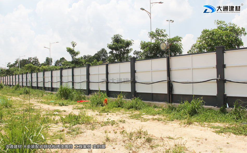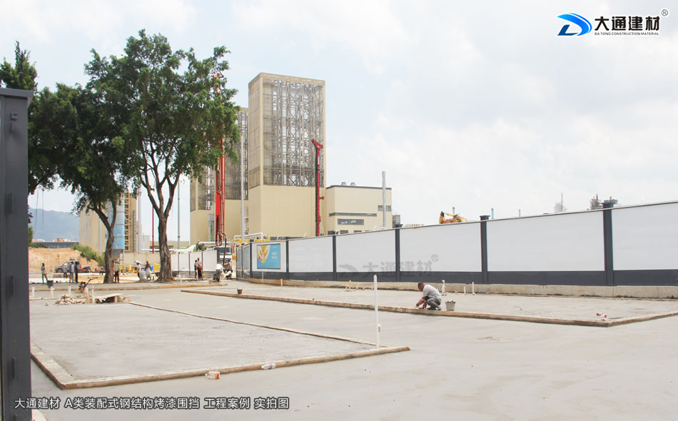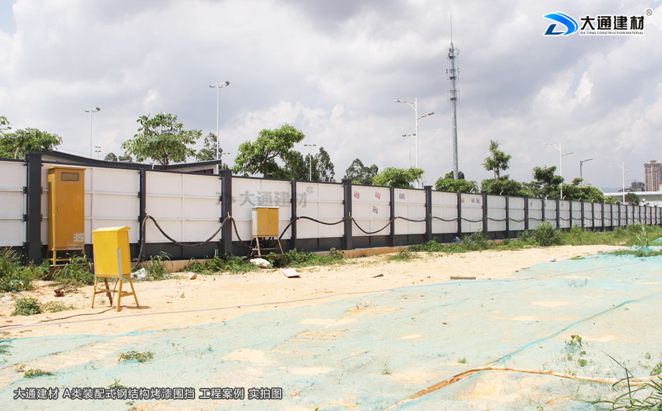 東莞東坑鎮工地臨時施工工程選用的是深圳市大通建材有限公司生產批發的鋼結構圍擋a類2.5米高半龍骨款 來對施工工地進行隔離防護