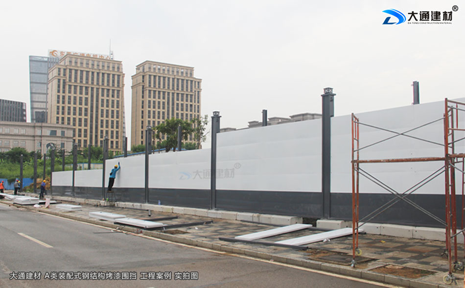 東莞城市建設(shè)圍擋使用大通建材裝配式鋼結(jié)構(gòu)圍擋烤漆A款定制4米高+圍擋基礎(chǔ)塊把施工場所圍起來,為施工安全貢獻(xiàn)一份力量
