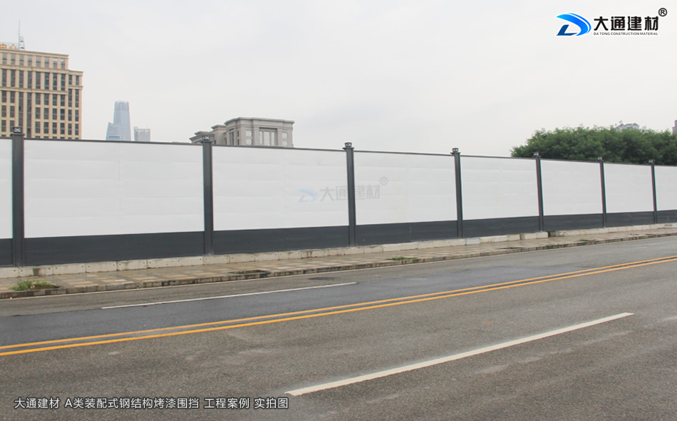 上述圖片展示的是 大通建材裝配式鋼結(jié)構(gòu)圍擋烤漆A款定制4米高+圍擋基礎(chǔ)塊 實拍案例圖