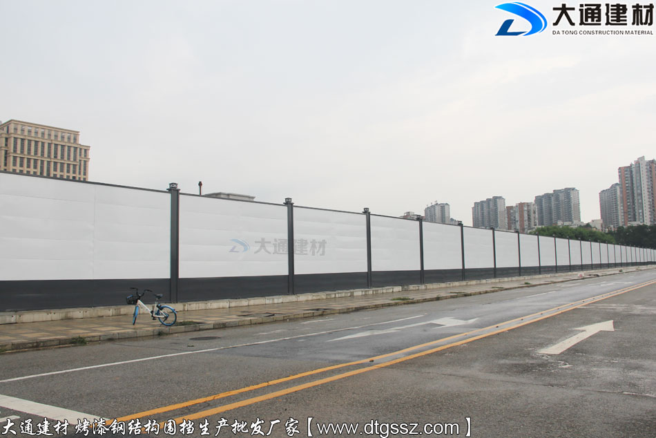 東莞廣播電視中心附近施工工程項目使用大通建材根據用戶的需求定制化生產的4米高的鋼結構圍擋,這款圍擋是大通建材推出的性價比很高的A類烤漆圍擋半龍骨款,不僅具有美觀環保的特點,還拆裝方便、安全穩固、經久耐用,適合地產工程項目、市政建設施工、道路改造等工程使用。