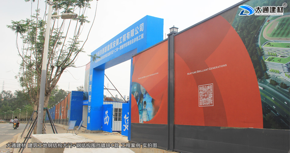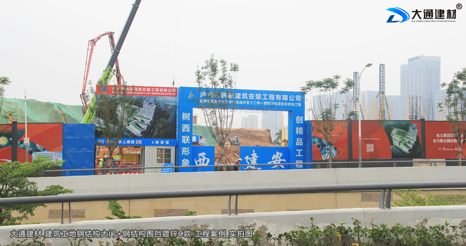 瀘州市西聯(lián)建筑安裝工程有限公司在深圳市龍華區(qū)北站片區(qū)學(xué)校項(xiàng)目工程,選用了深圳市大通建材生產(chǎn)的鋼結(jié)構(gòu)工地大門為項(xiàng)目部大門。