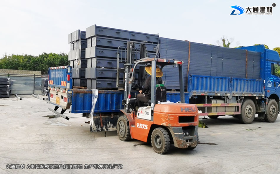 圍擋生產廠家深圳大通建材,給東莞客戶定制的A類增高款裝配式烤漆鋼結構圍擋 裝車發貨中,敬請驗收。