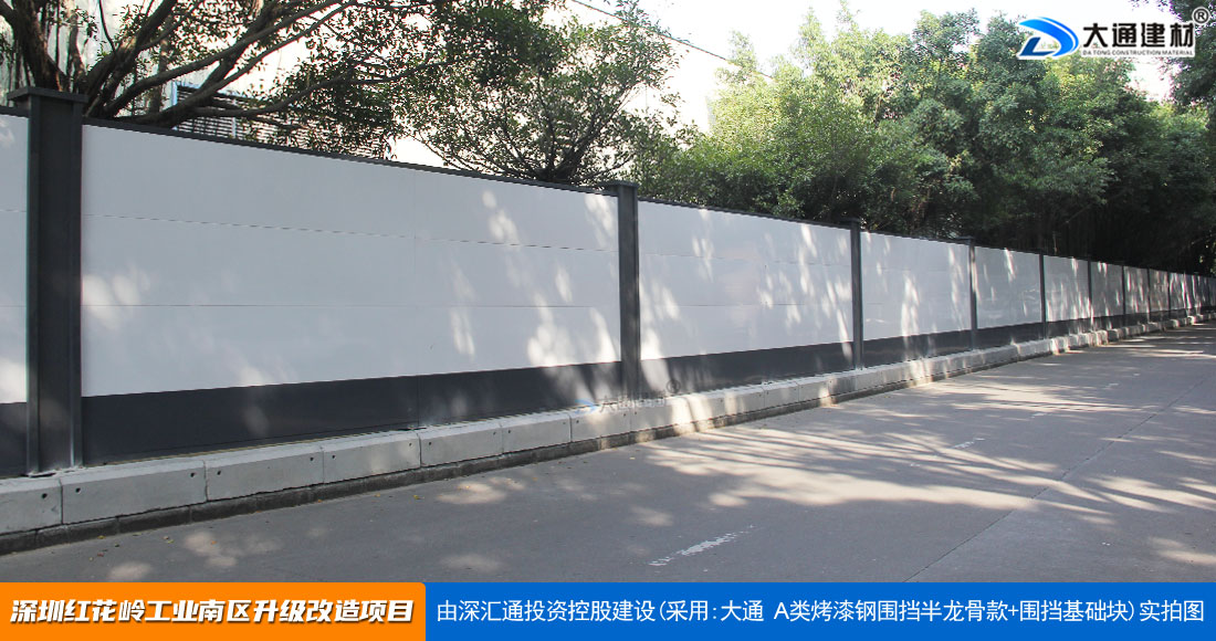 深圳西麗紅花嶺城市更新項目工程,在工程周邊都都設置了采用大通建材A類烤漆鋼圍擋把施工場所圍起來,該項目工程位于深圳市南山區西麗街道紅花嶺工業園區由紅花嶺工業南區、北區、西區共三個部分組成,坐落于塘朗山山腳,東臨西麗商業中心區,西接西麗高爾夫球場,北望西麗湖度假村及深圳大學城。
