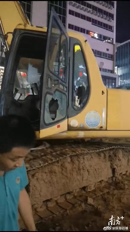 深圳羅湖著名商圈“東門”近日發生一起工程施工圍擋、機械等設備遭到打砸事件。7月15日,“東門時代廣場”項目在對工地內一處升旗臺實施拆除的過程中,遭到十余名不明身份人員野蠻阻撓,這些人員手持斧頭、鐵榔頭、棍棒,在破壞工地圍擋沖入工地后,又對施工挖機進行了破壞,砸爛了挖機玻璃。