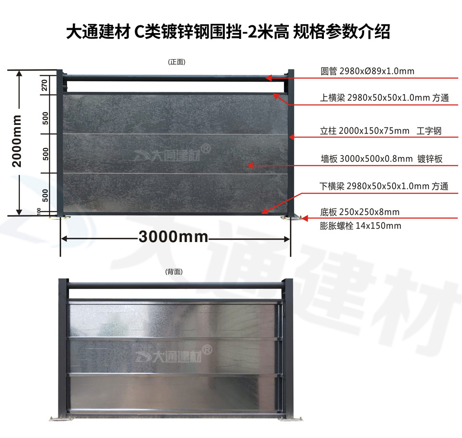 C類裝配式鋼圍擋 鍍鋅板款-產(chǎn)品特點
