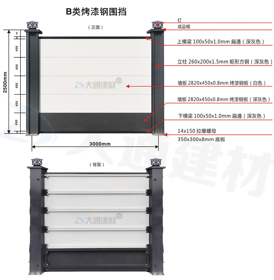 深圳市大通建材工程施工圍擋 B類裝配式鋼圍擋-烤漆款 產品特點