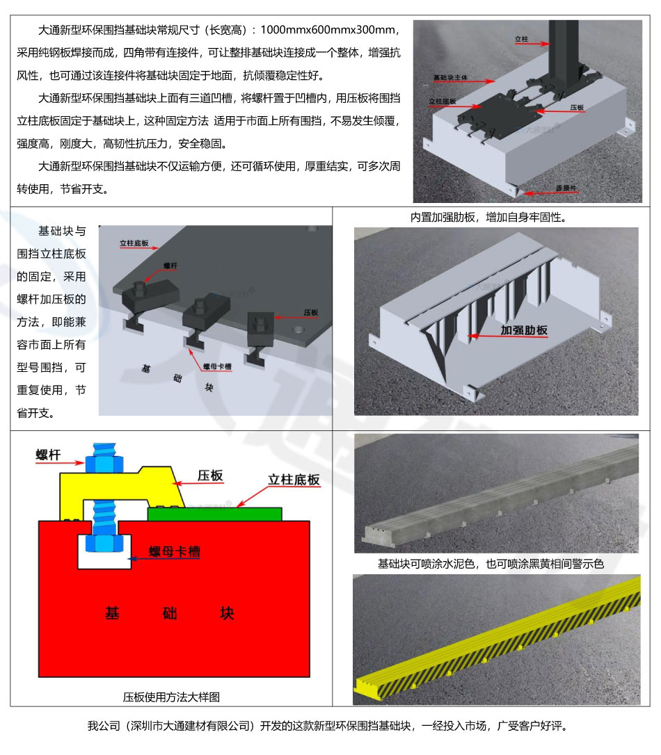 深圳大通建材推出一款新型環保圍擋基礎塊 現貨批發